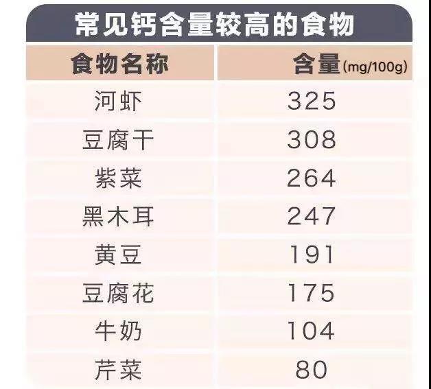 另外,通过饮食也可以补充一定人体对钙的需求:每天喝300克的奶或奶制品;吃300~500克蔬菜,其中一半是深色蔬菜;晒20分钟左右(有效的)太阳。