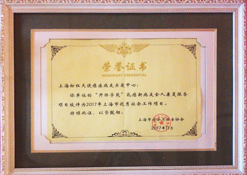 3月20日国际社工日,粉红天使“开怀学苑”荣获上海市优秀社工服务项目。此奖项是由上海市社工协会颁发,是社工领域中的最高奖项。“开怀学苑项目”经过申报、推荐、初选、投票、公示、答辩等重重环节,从68个选送项目中脱颖而出。